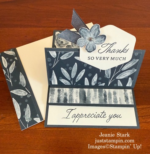 I really like a monochromatic card! Of course you can make this fun fold with any designer series paper. Mix and match and have fun!!!