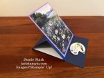 This paper reminds me of a Monet Art Gallery. I thought an easel card was the perfect choice to highlight the gorgeous art. And what better sentiment than”You inspire me” from Crafting With You. I am so inspired by fellow stampers, my friends/team members, customers who order from me, as well as those of you who follow my blog. I love that I get to create and share with you. Let’s take a closer look at each of these cards and color combinations.